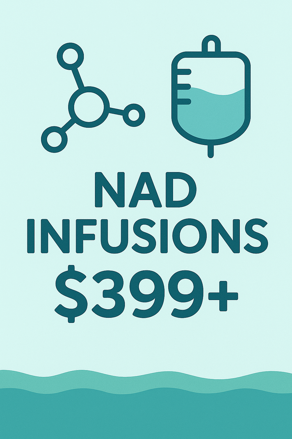 Ingredients: 1L Normal Saline, NAD, Glutathione and Vita Complex